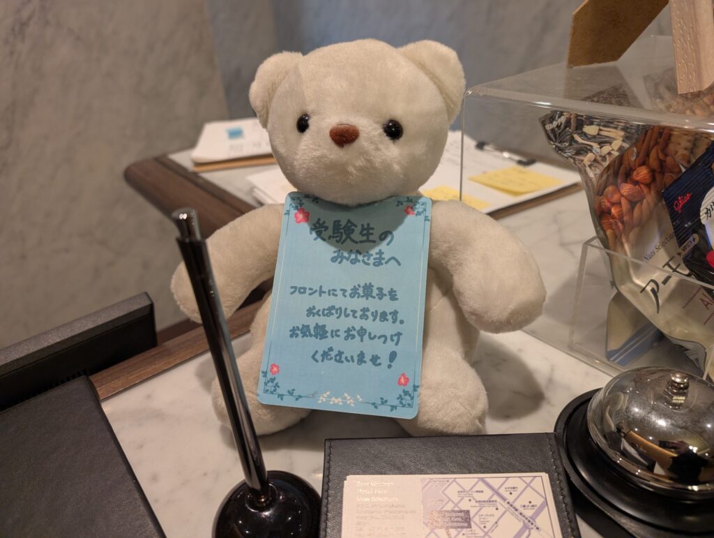 お菓子がもらえるということよりも、地元を離れて受験を迎える受験生にはこういう応援してくれてる感覚が沁み入りそうです。