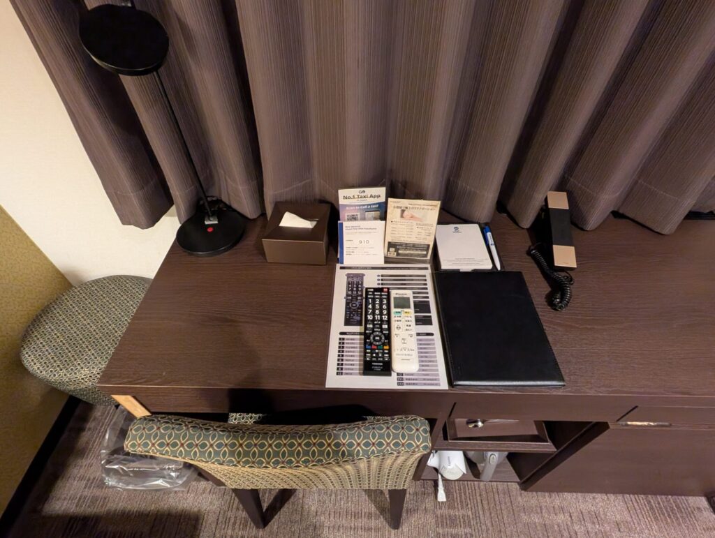 こちらのホテルではプリンターはありませんでしたが、PCが設置されていました。