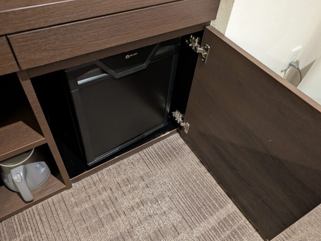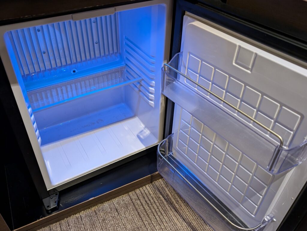 ミニバーはなく、冷蔵庫は空なのでフルに使えます。