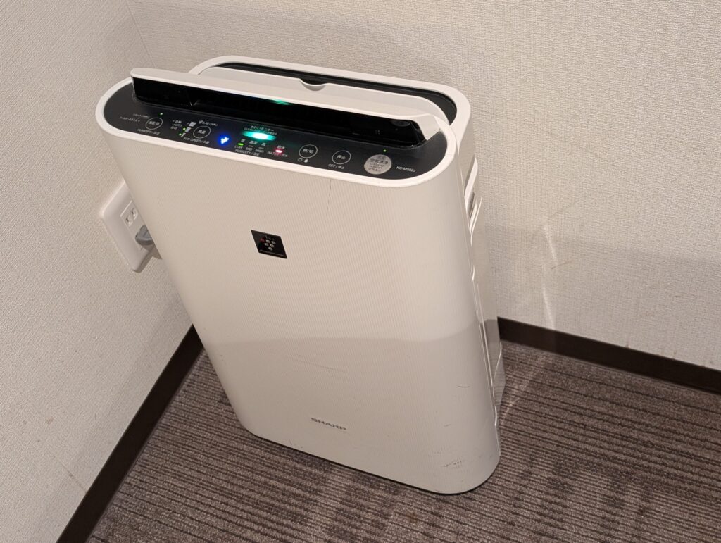 大きすぎず小さすぎずテレビは程よいサイズ感で、空気清浄機も常備されていました。