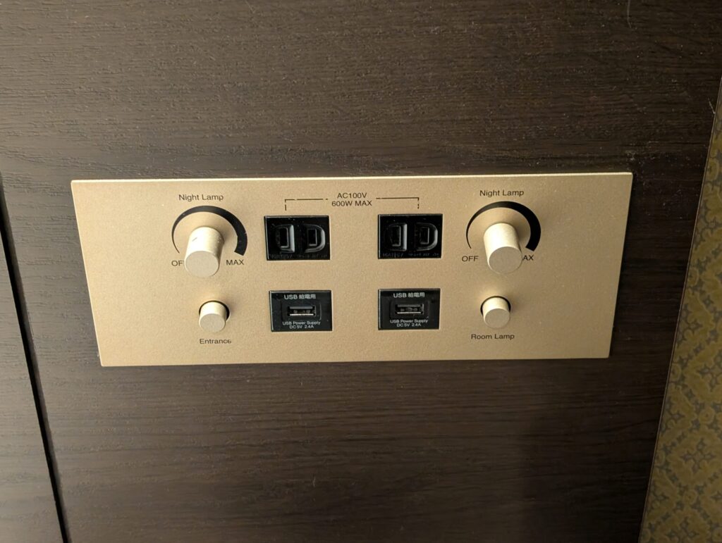 このホテル、実は2020年に開業と比較的新しいホテルということもあり、枕元の電源はコンセント2口、USBポート2口と充実していました。