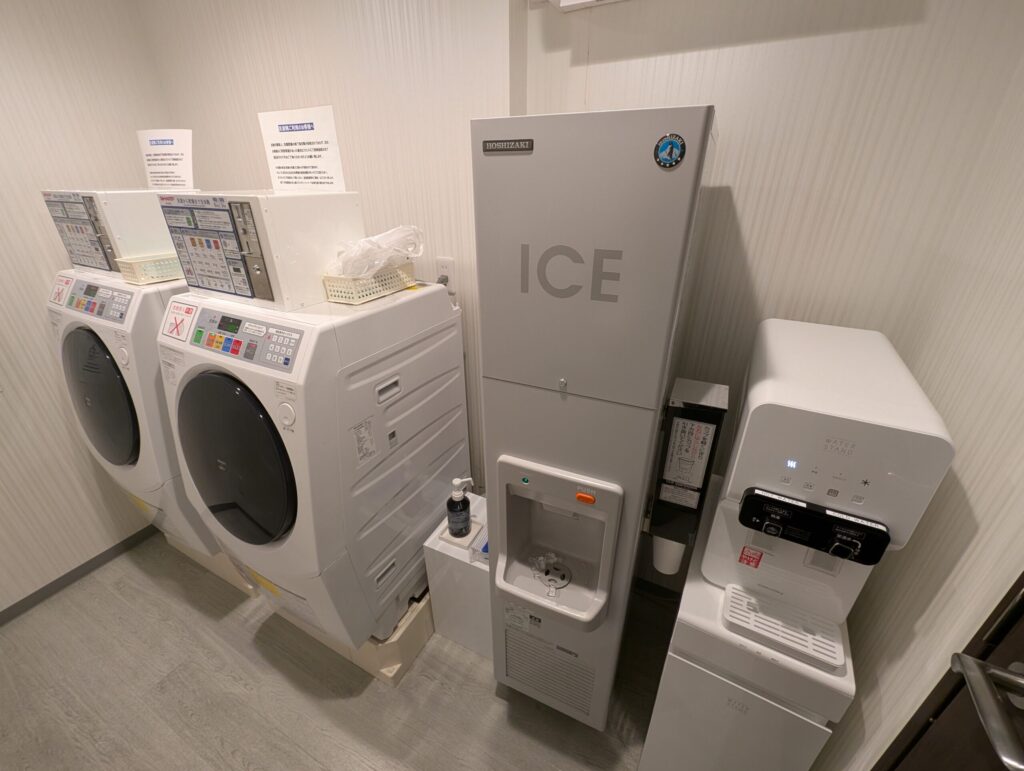 コインランドリーと同じスペースに製氷機とウォーターサーバーがあります。