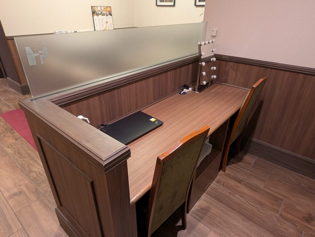 恥ずかしながら、OAコーナーって何?となっていたのですが、OAは「Office Automation」の略で、宿泊者が利用できる共用PCやプリンターなどが設置された事務作業スペースのことのようです。
