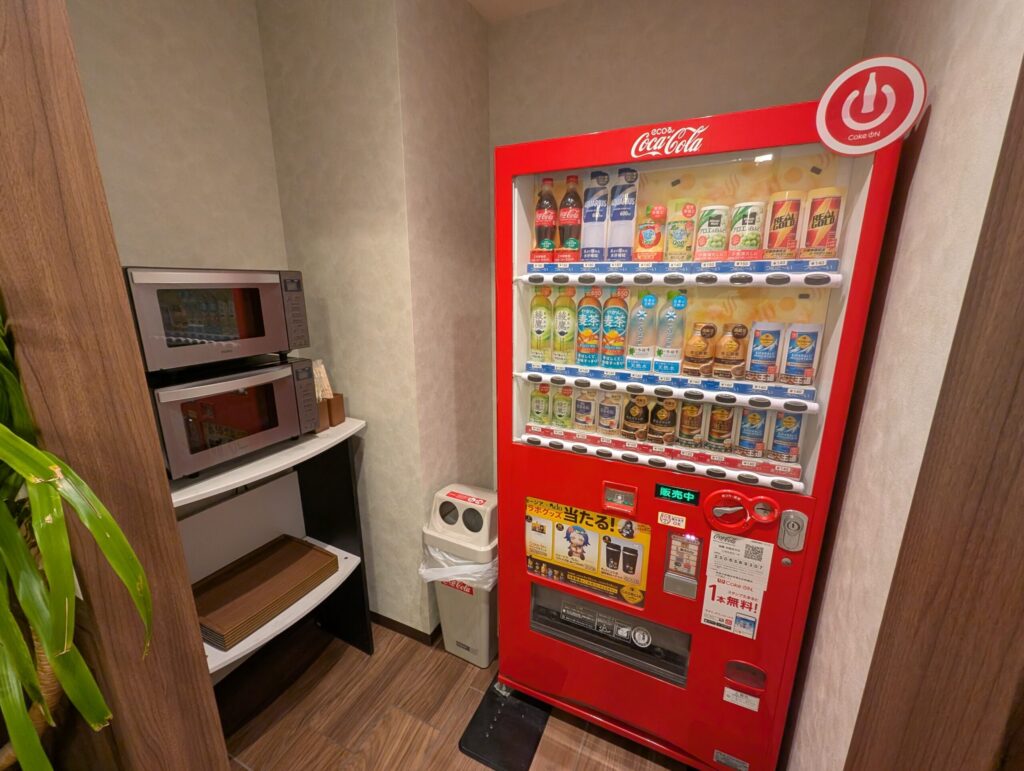 電子レンジのみ表記されていましたが、飲料の自販機もありました。