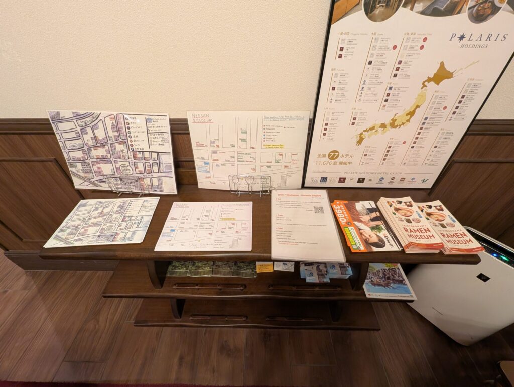 既成のものから、ホテル手作りのものまで観光案内のパンフレットが置かれていました。