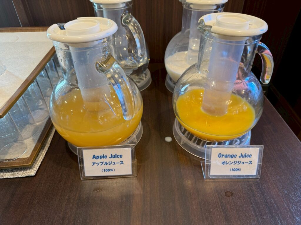 温かいドリンクだけでなく、冷たいドリンクもアップル、オレンジのジュースと牛乳まであるのはありがたかったです。