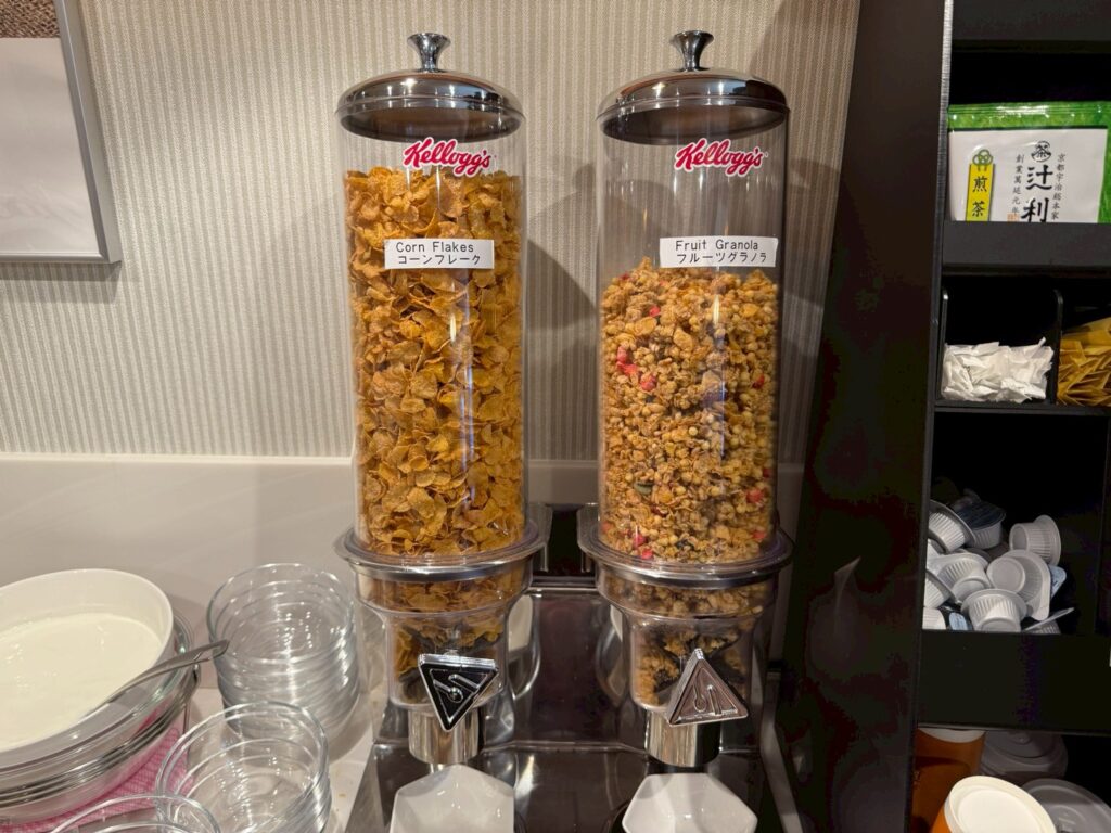 シリアルはコーンフレークだけでなく、フルーツグラノーラまでありました。