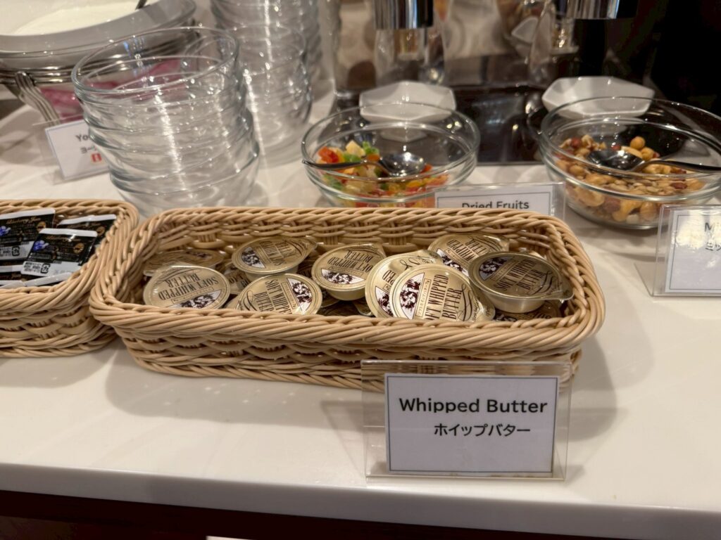 いちご、ブルーベリー、マーマレードの3種類のジャムとホイップバターも提供されていました。