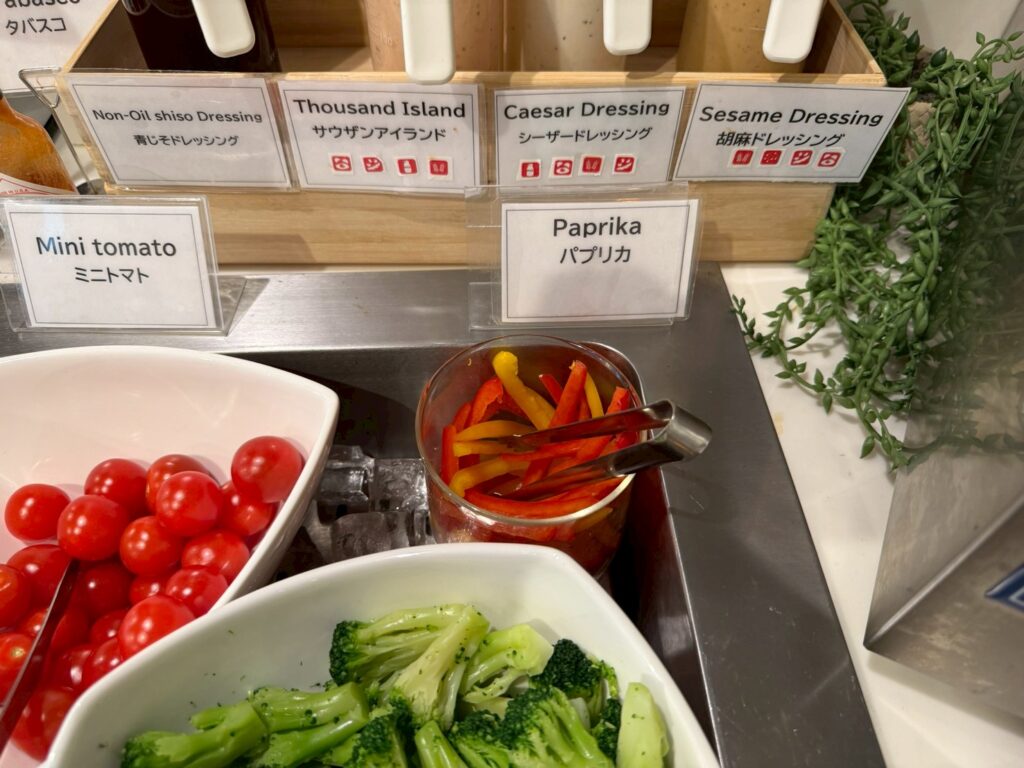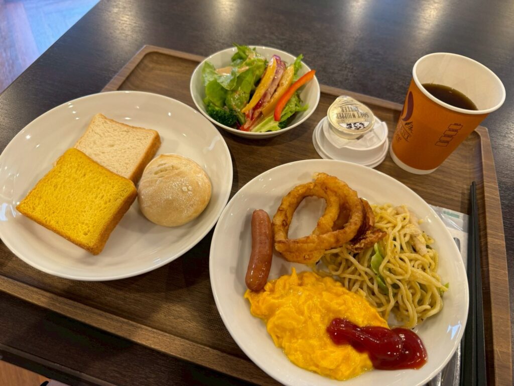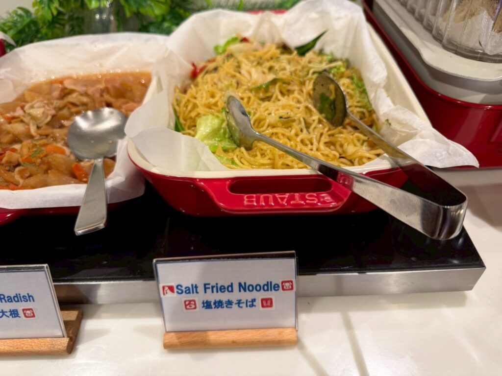 先ほど触れた塩焼きそばがやはり一番のお気に入りだったそうですが、野菜の新鮮さが感じられるサラダ、カボチャのペーストが練り込まれたプルマンパンプキンやはちみつ入りのソイハニーロールも美味しかったようで、リーズナブルな料金の割に満足度の高い内容だったようです。
