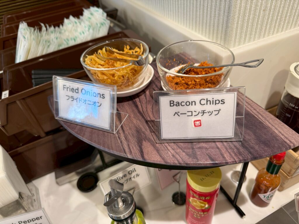 フライドオニオンやベーコンチップまであり、朝からがっつりめのサラダを食べることができます。