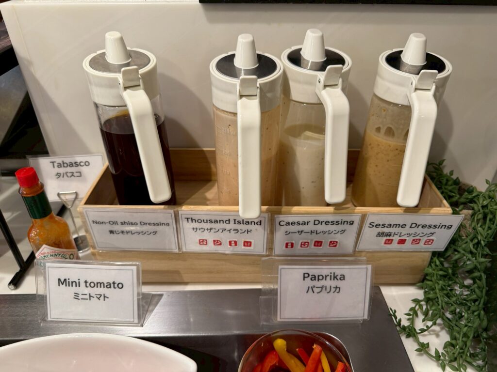 ドレッシングも4種、さらにはオリーブオイルまで用意されていたのには驚きました。