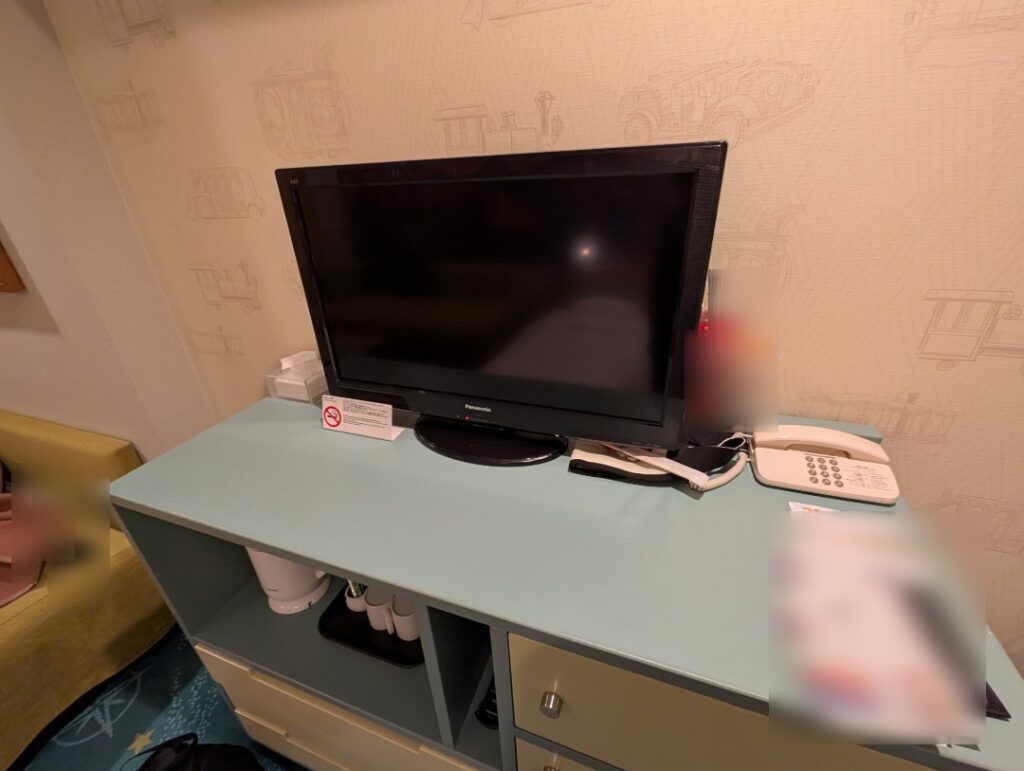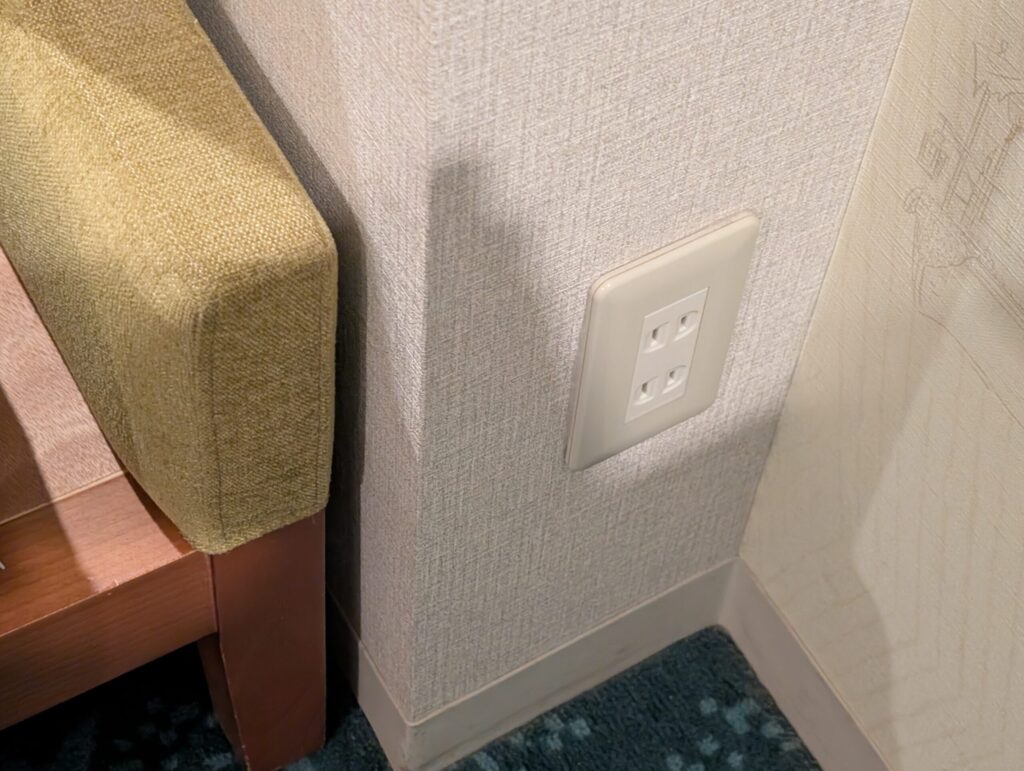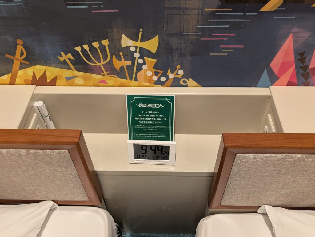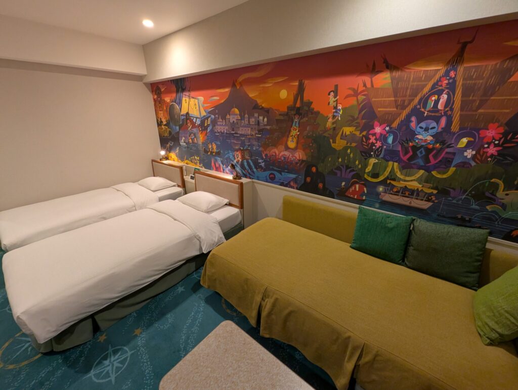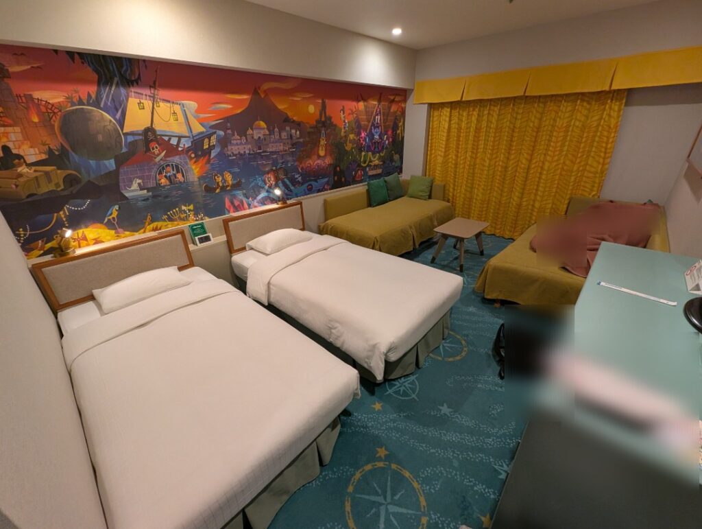 ベッド側の壁紙には東京ディズニーランド、ディズニーシーが描かれていて、「〜のアトラクションだ!」と言い合いながら眺めるのがとても楽しかったです。