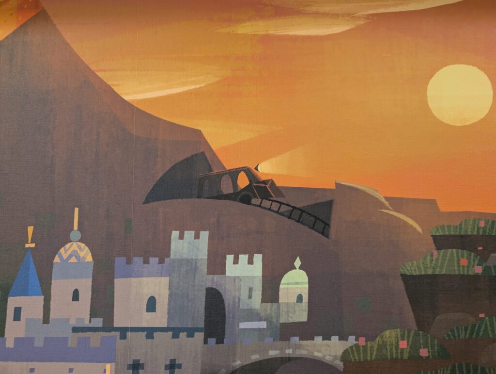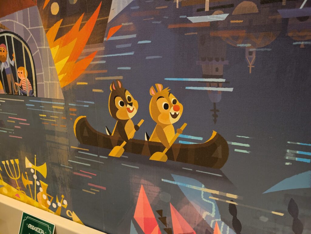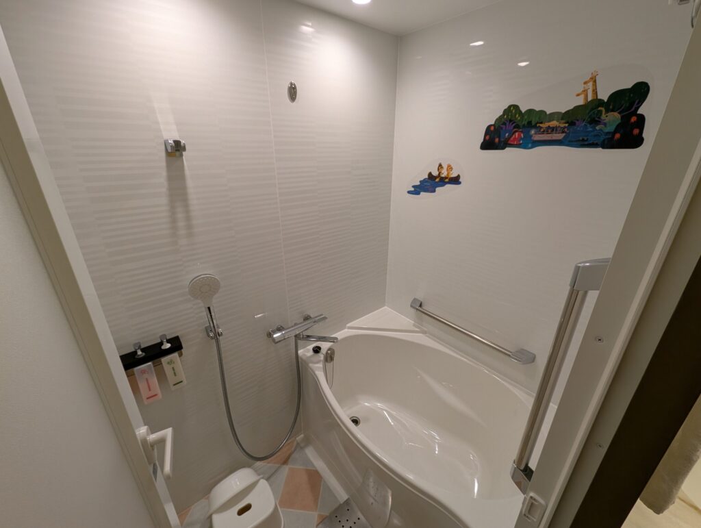 浴室もピカピカで清潔感があり、こちらの壁にもアトラクションのイラストがあります。