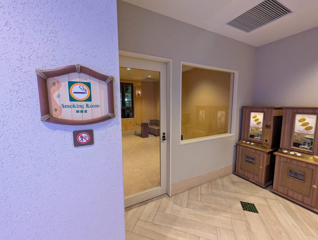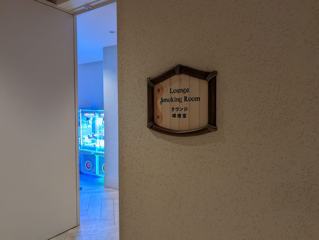 ロビー階をぶらぶらお散歩していたら見かけたラウンジ、喫煙室の表示がありました。