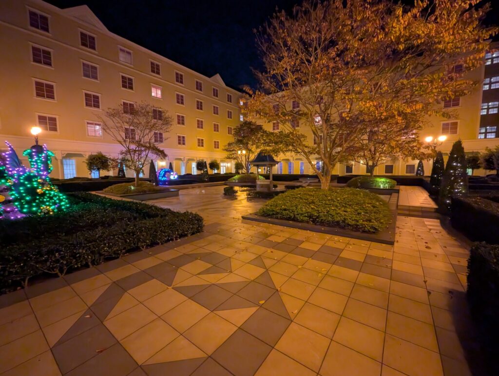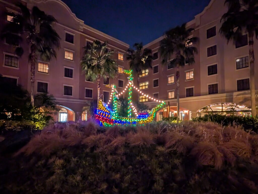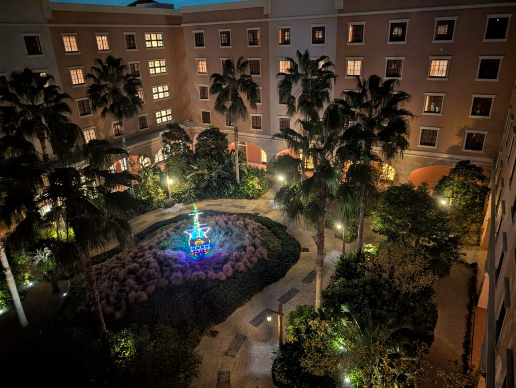 セレブレーションホテルは「ディスカバー」「ウィッシュ」ともに中庭のかわいい装飾が楽しめることが魅力のひとつです。