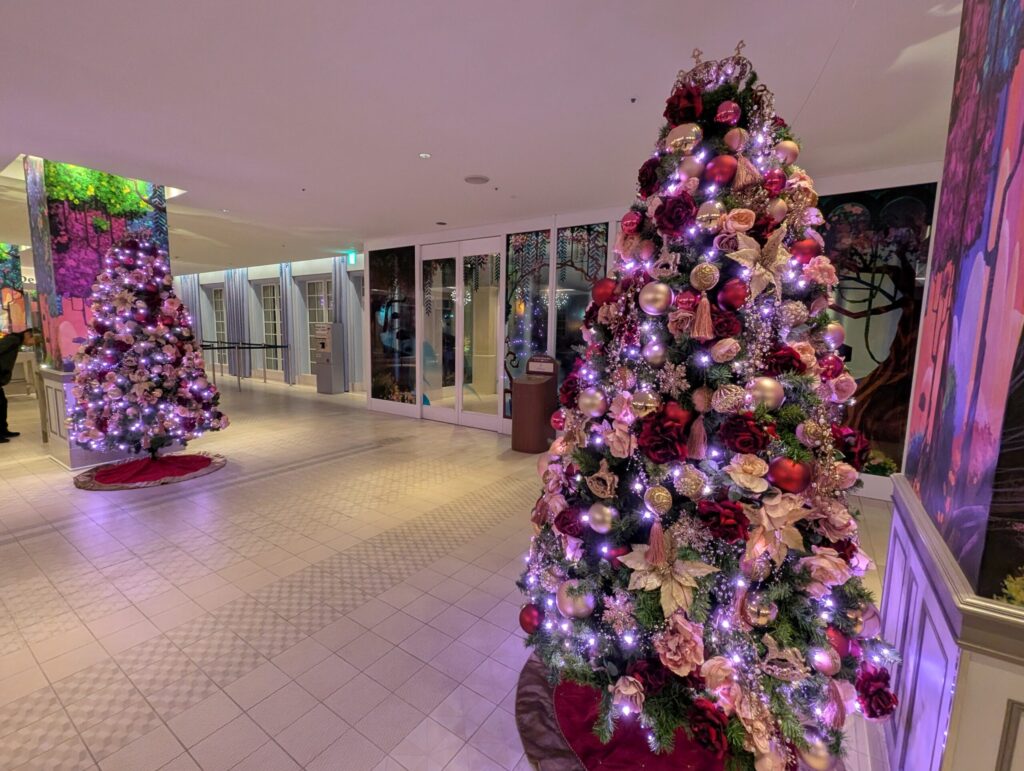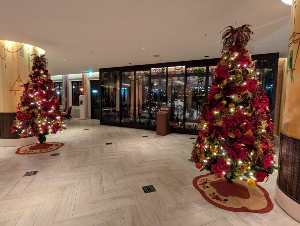 ホリデーシーズンということで飾られていたクリスマスツリーは赤を基調としたものでした。