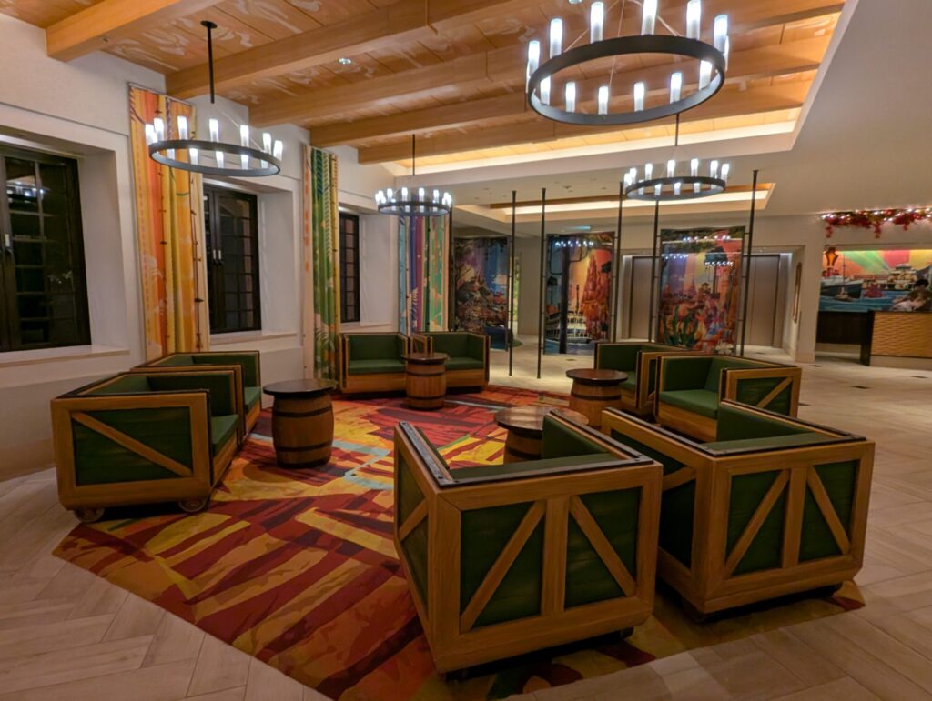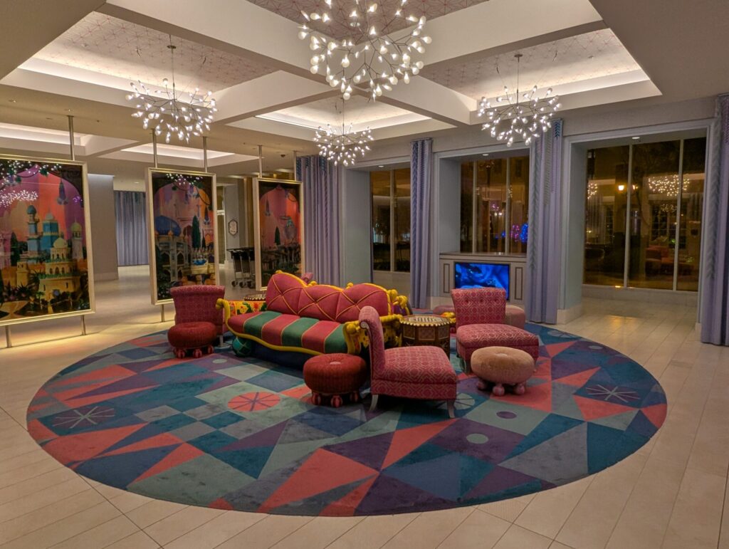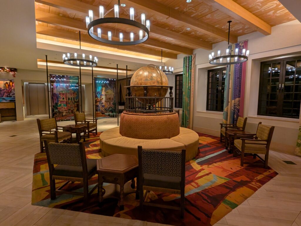 宿泊したのは2棟のセレブレーションホテルのうち「ディスカバー」の方でしたが、「ウィッシュ」のロビーと中庭だけ見に行ったので紹介します。