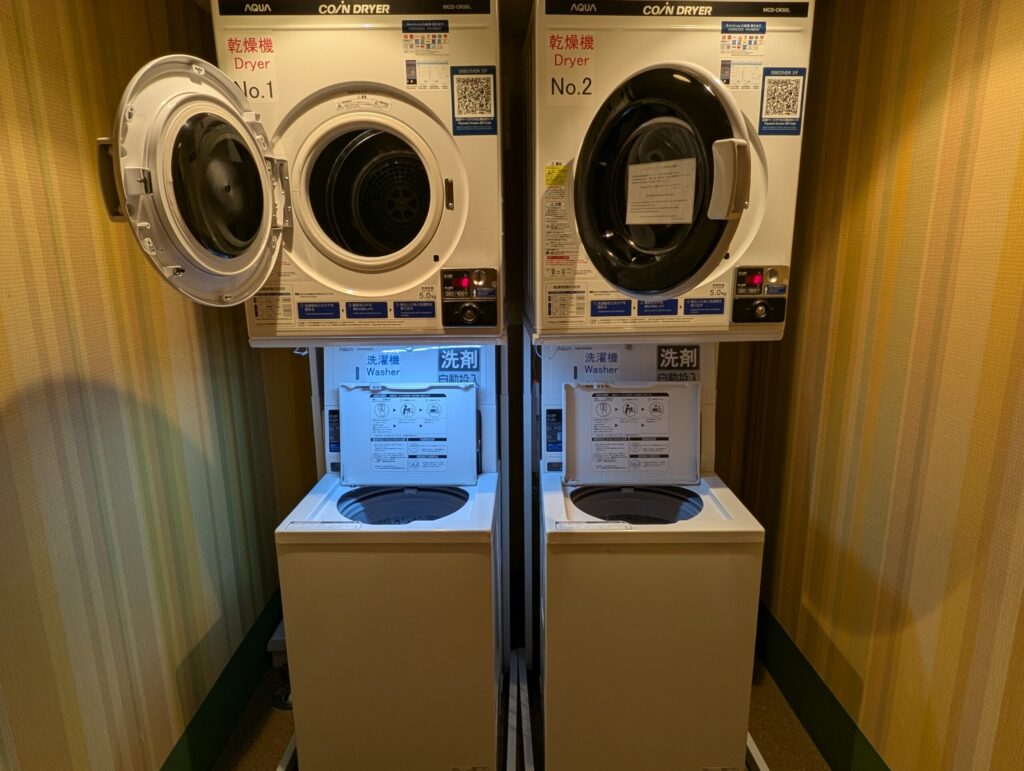 ホテル外にコインランドリーもあるので、時間と体力に余裕がある場合はそちらの利用を検討してみてもいいかもしれません。