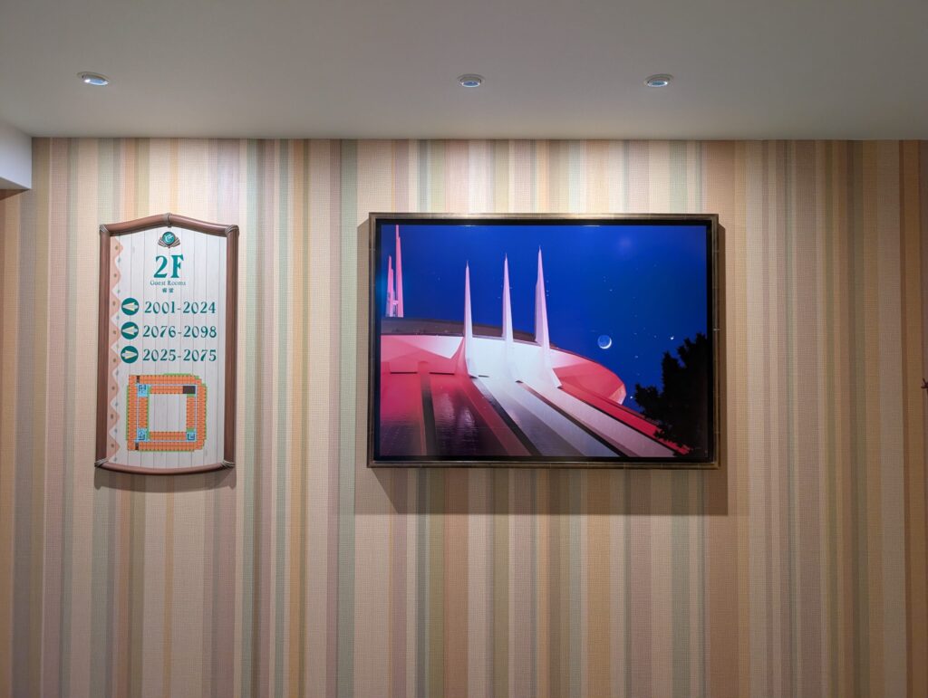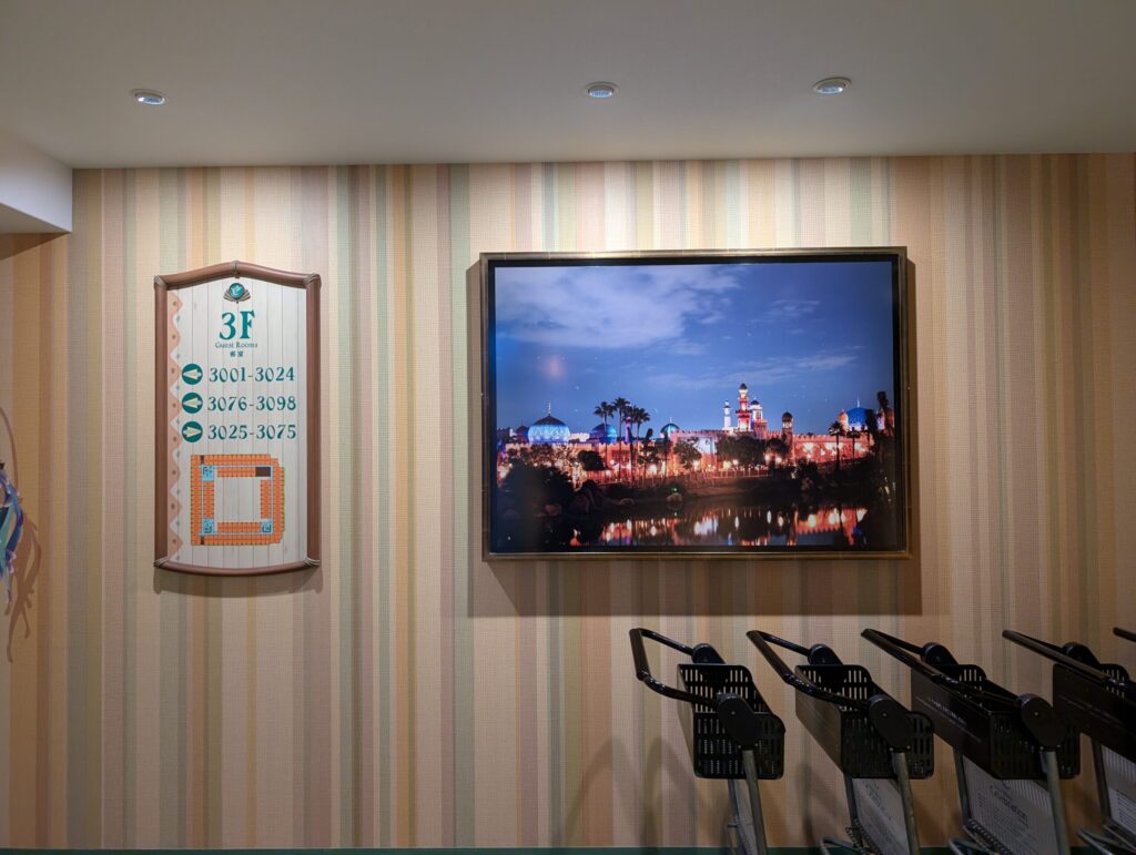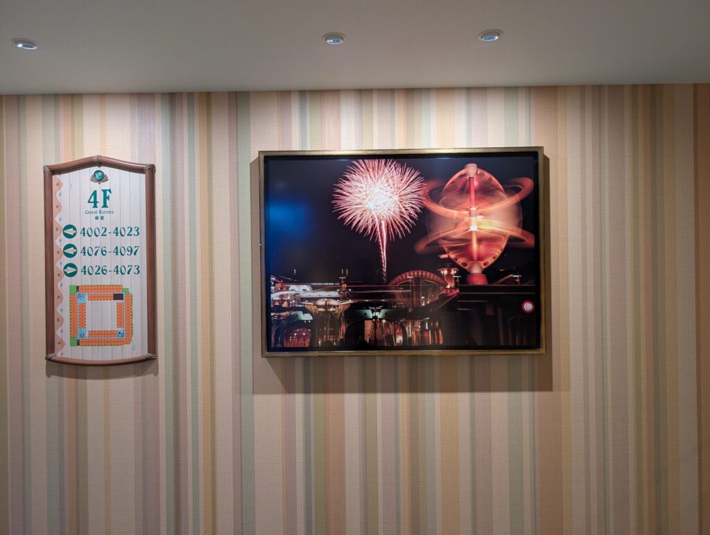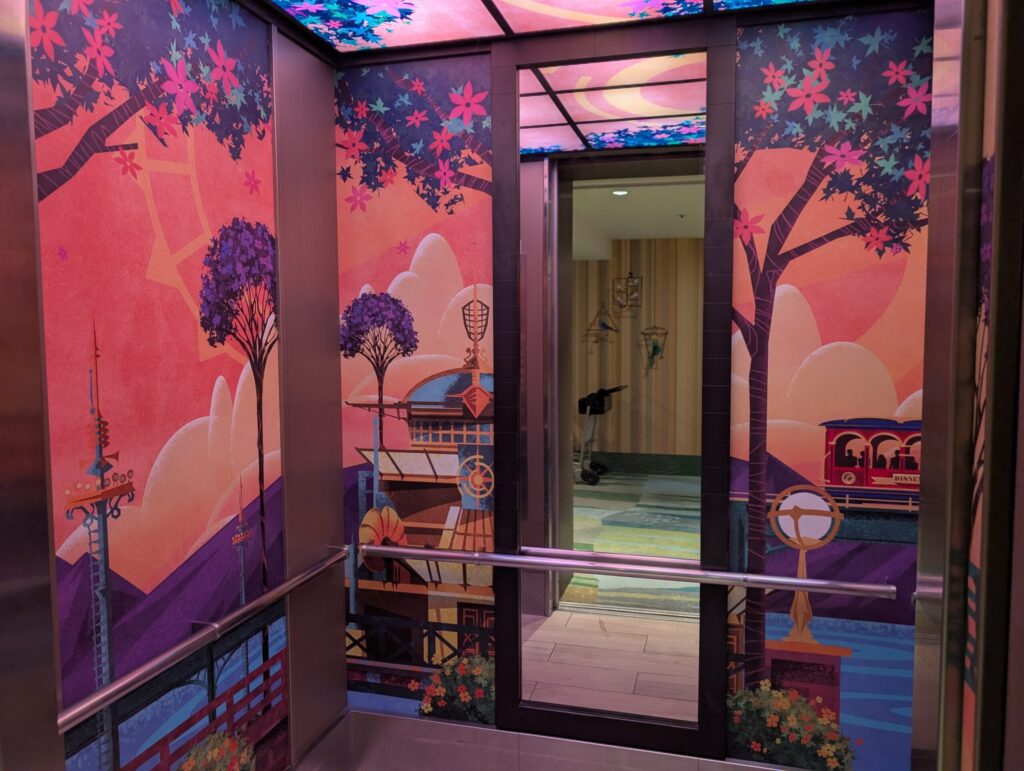 エレベーターの内装も、エレベーターホールにあるアトラクションの写真も綺麗です!