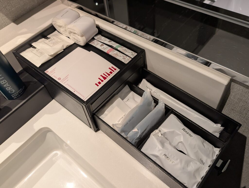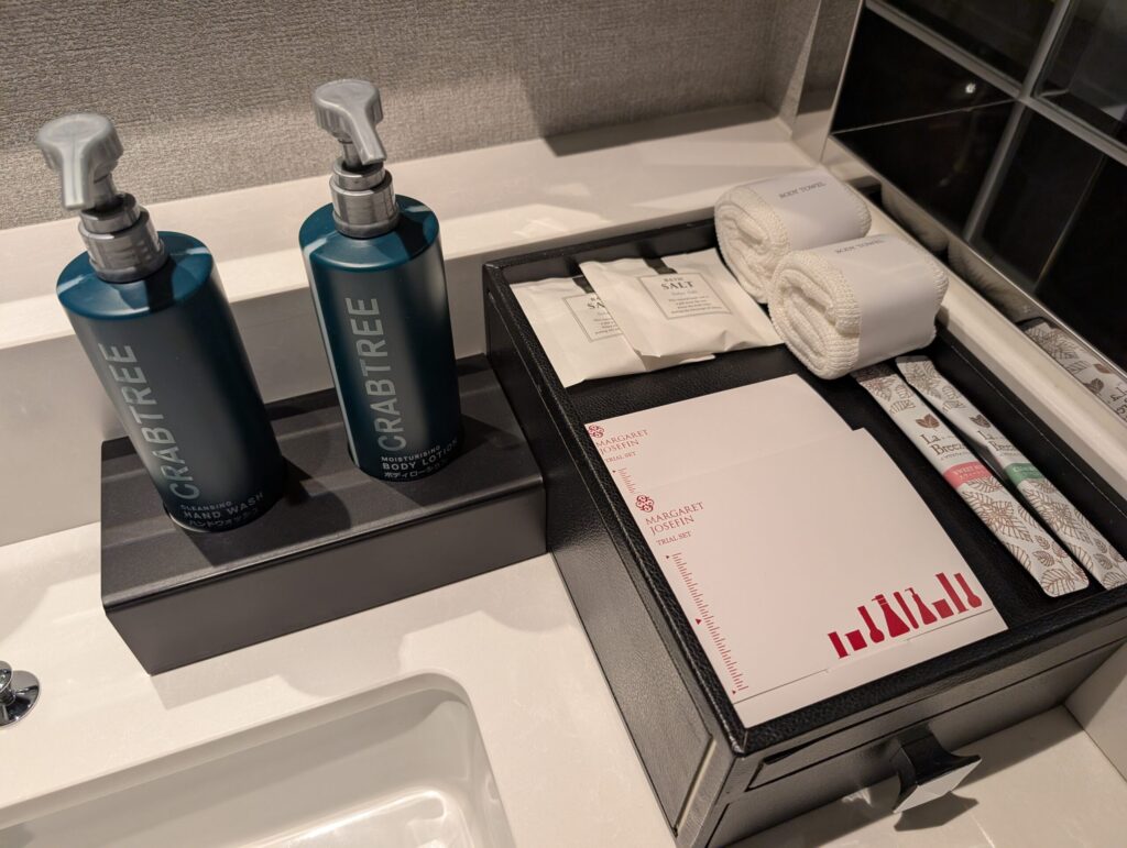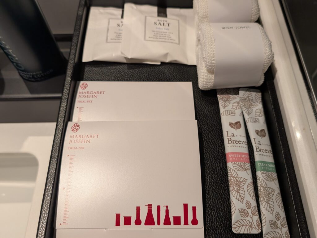ボディタオルやフレーバーの異なったマウスウォッシュ、などが提供されています。