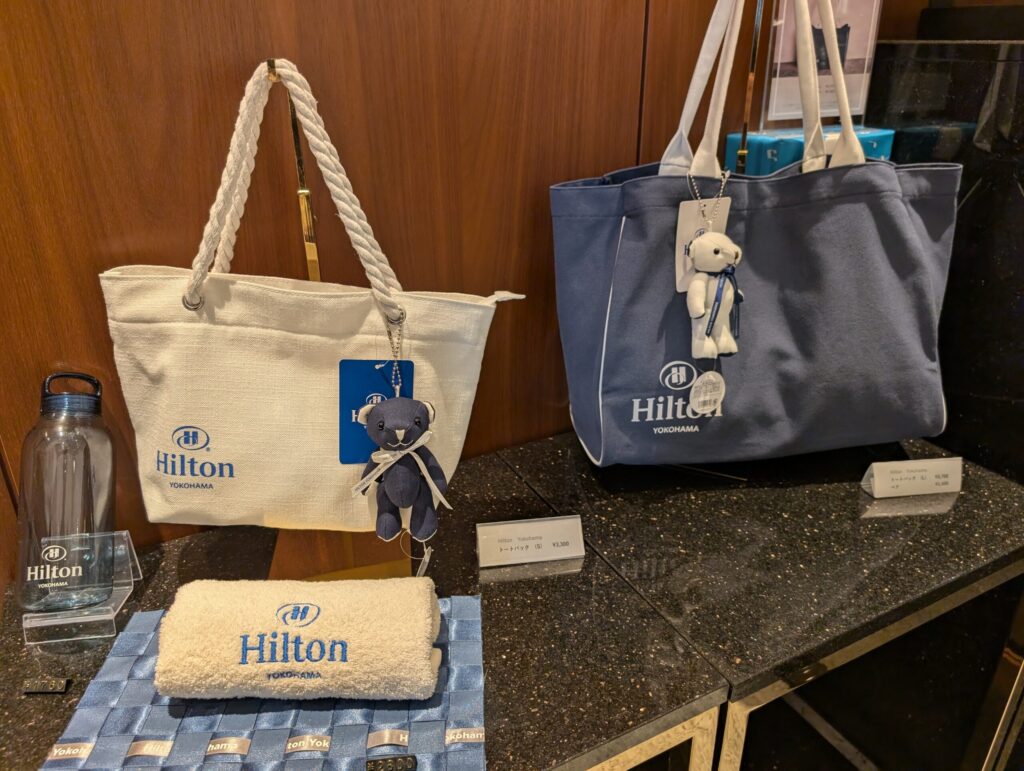 ほかにも、トートバッグやクマのマスコット、タオルやボトルなどヒルトン横浜オリジナルグッズも販売されていました。