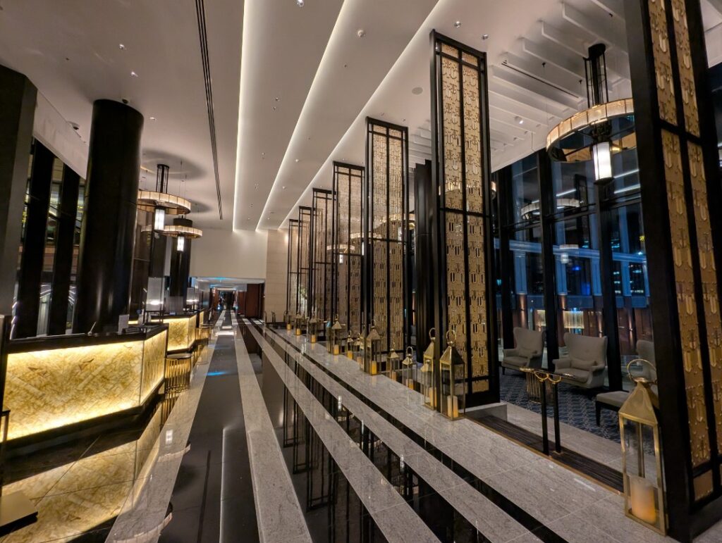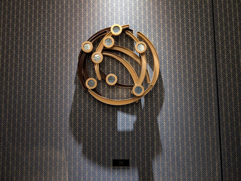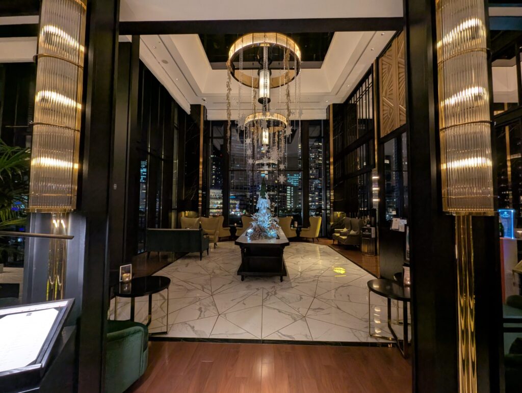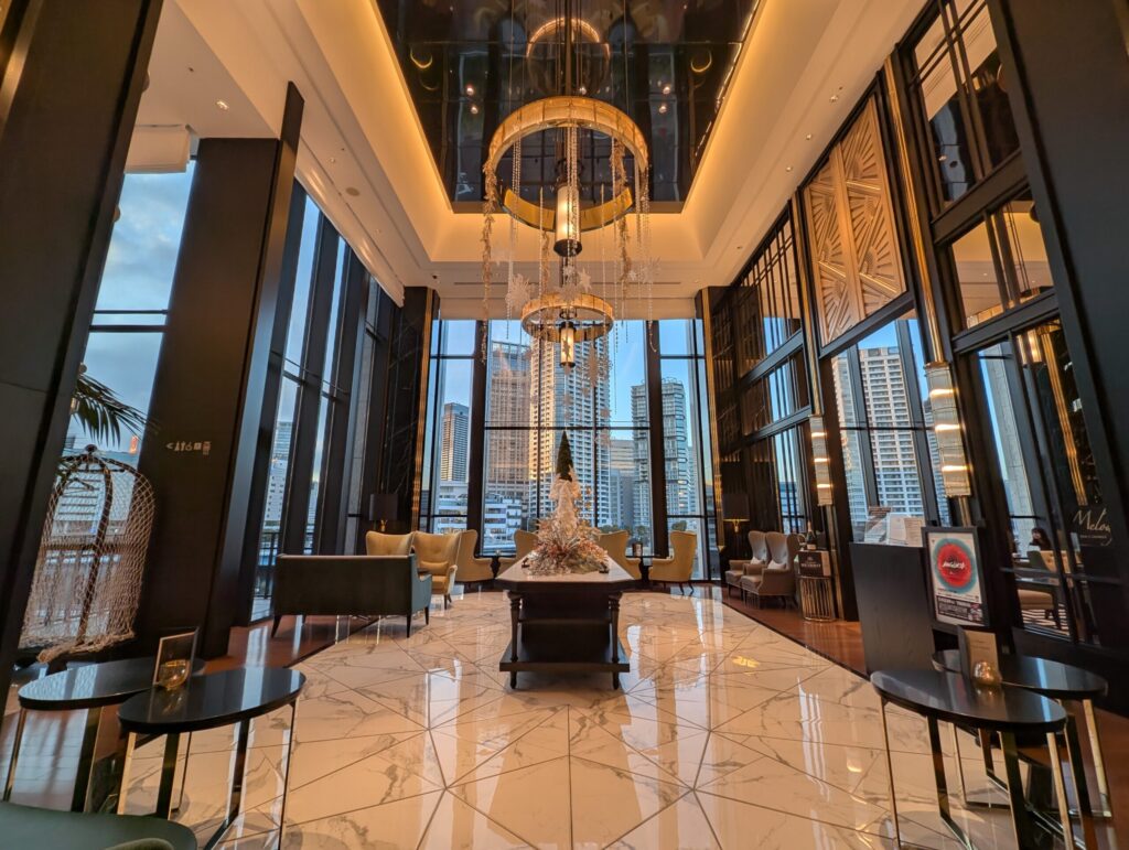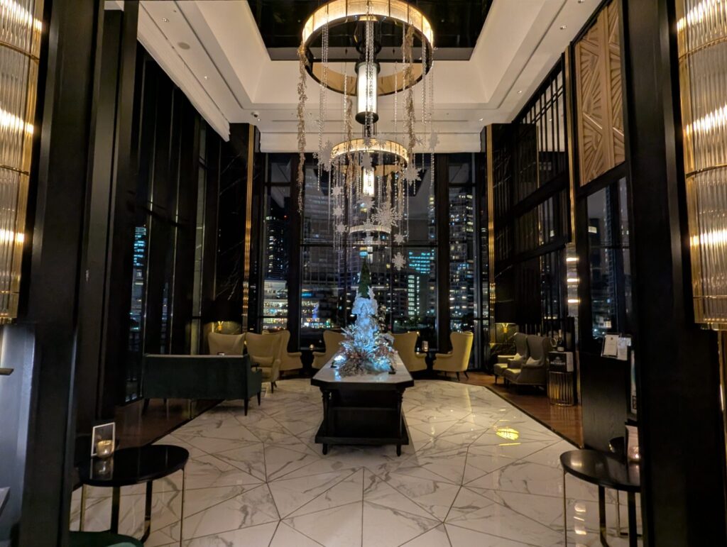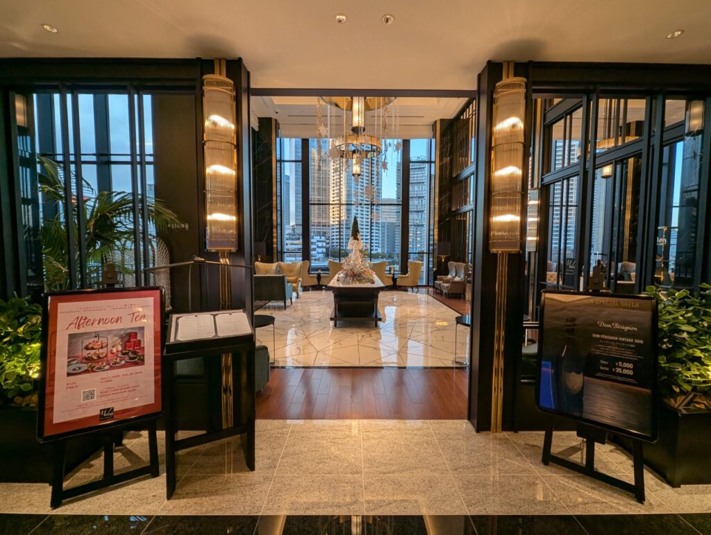 まずはロビーラウンジです。モノトーンをベースに、各所に金色が散りばめられたアールデコ様式の美しい装飾がとても美しいです。