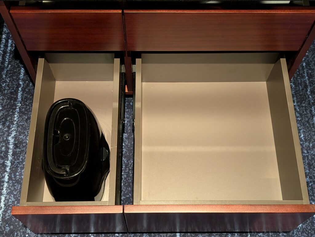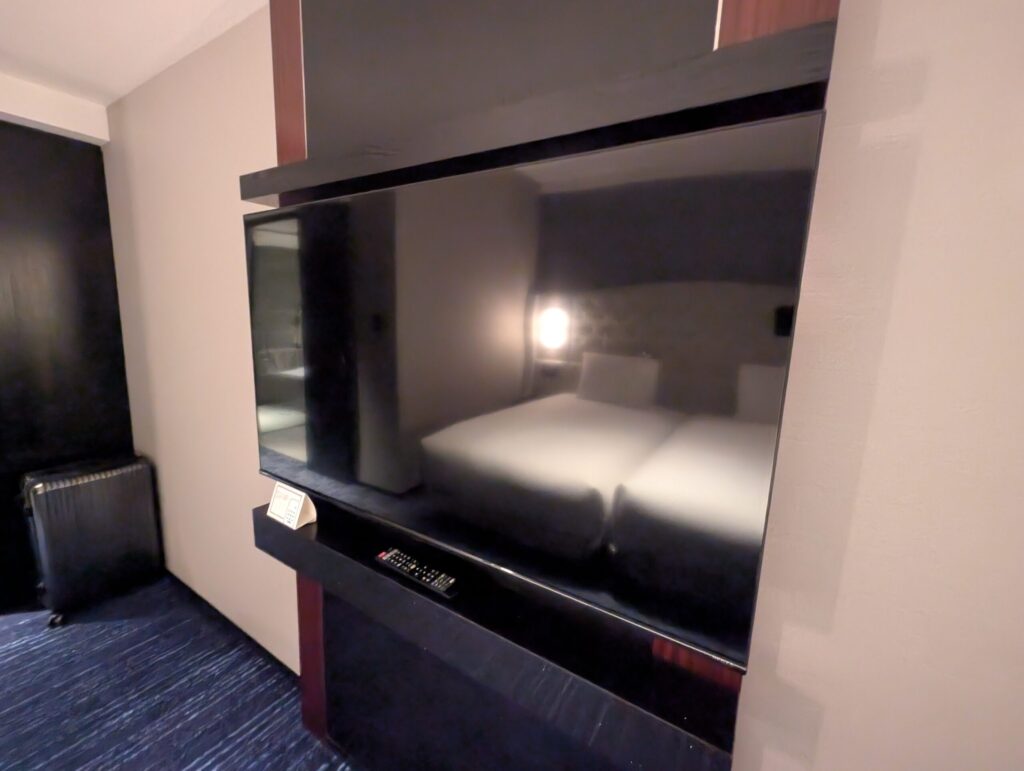 ライティングデスクもテレビもそれぞれ大きいですが、それが気にならないところにお部屋の広さ、快適さを感じます。