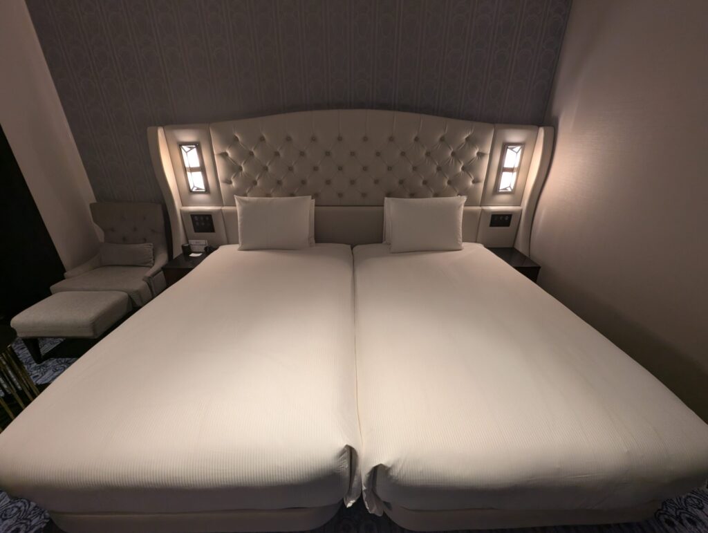 ツインルームですが、ベッドは繋がれてキングサイズ相当のサイズ感となっていました。