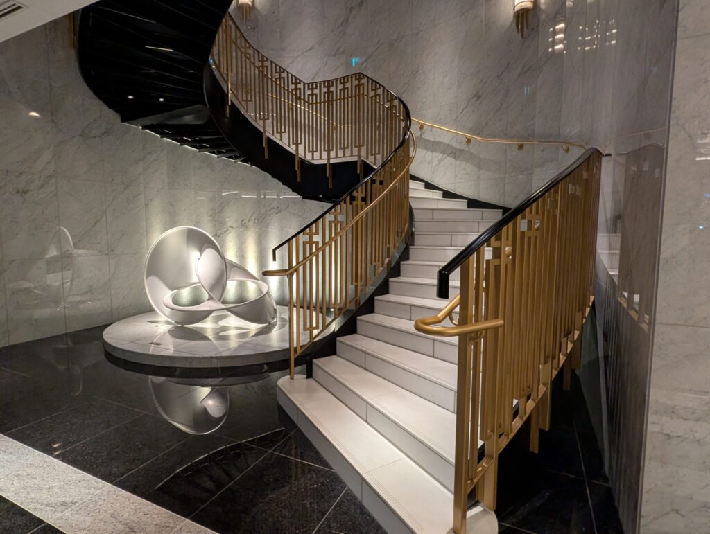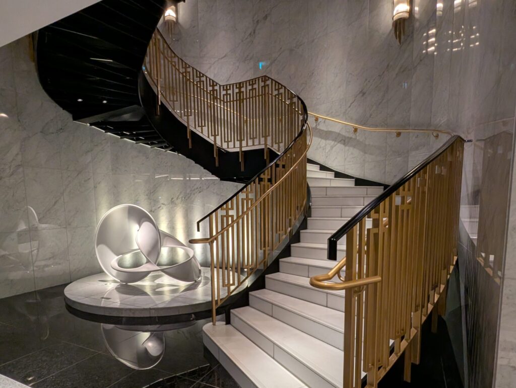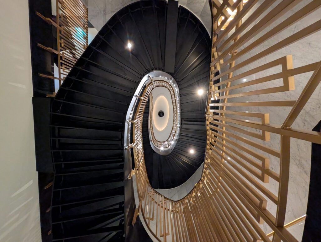 ヒルトン横浜の象徴的な螺旋階段はシンプルながら洗練されたデザインです。
