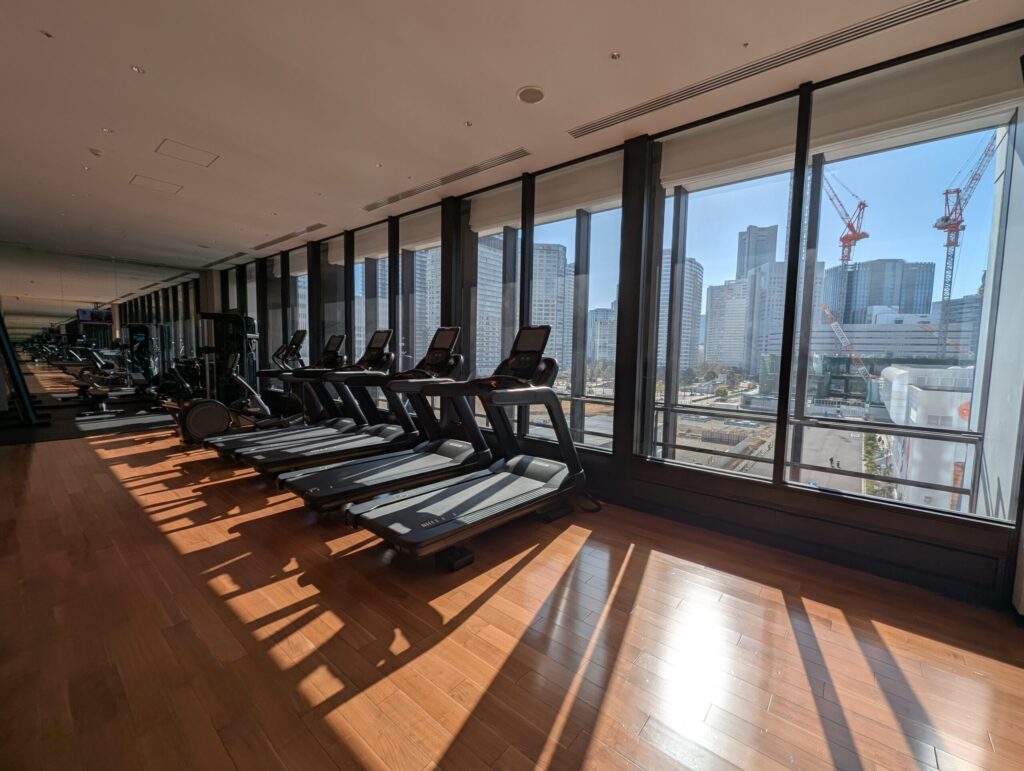 フィットネスは14階にあります。窓が大きく、開放感のあるつくりが特徴です。