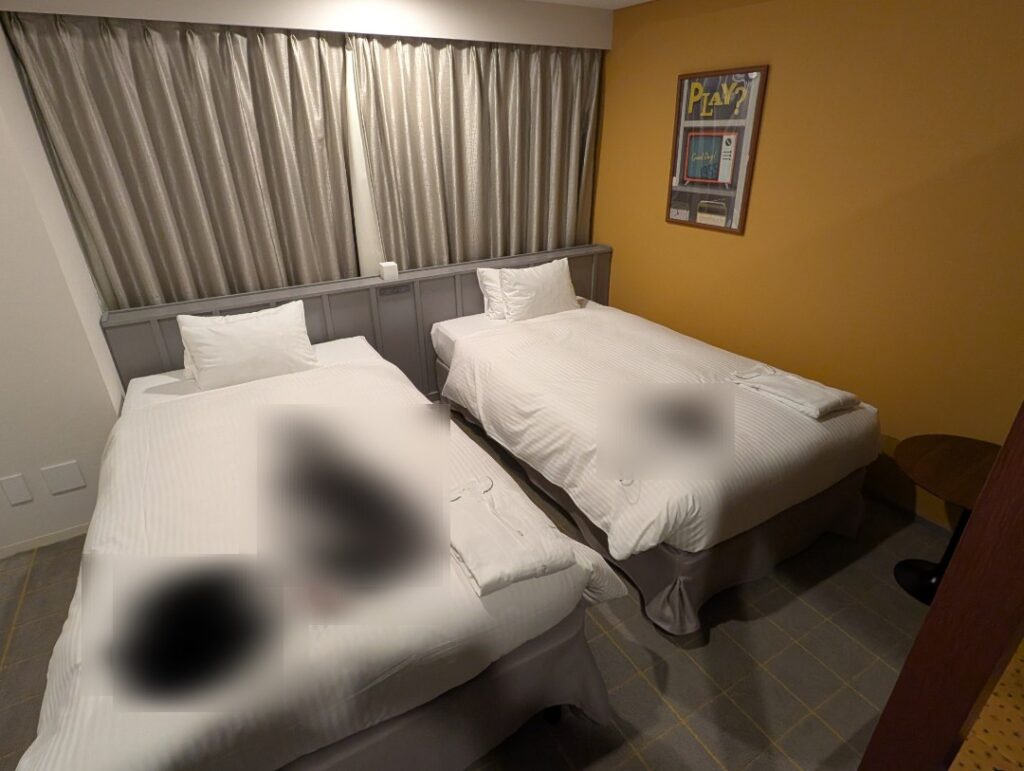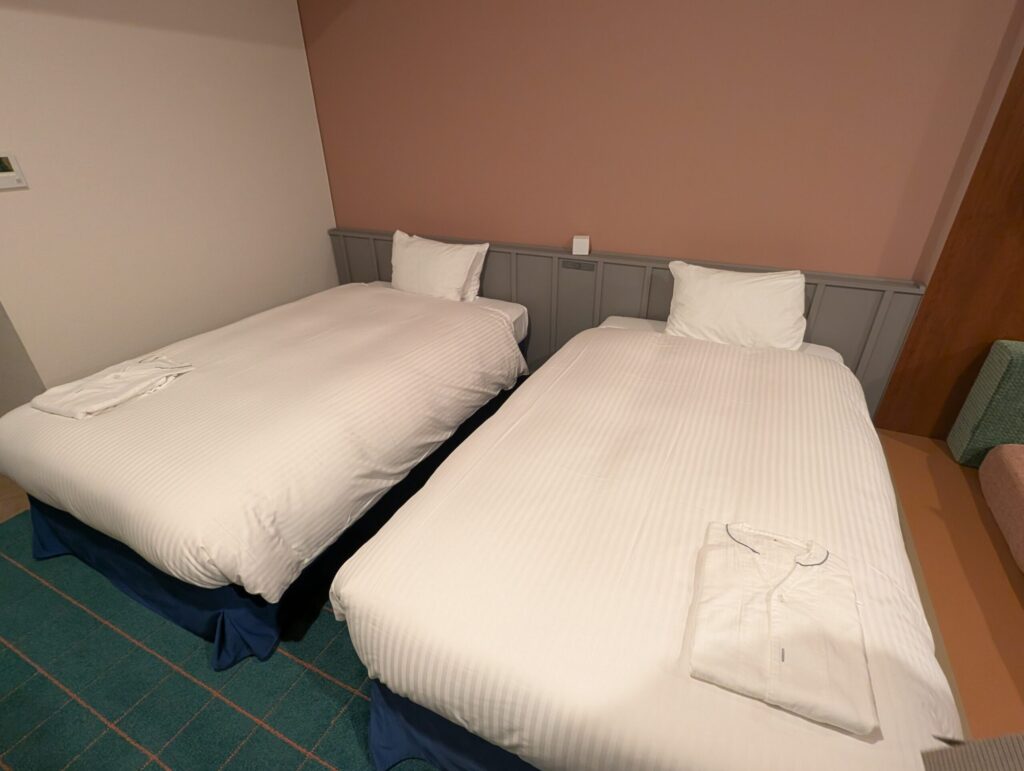 通常のベッドはお部屋の奥に2台並ぶ形で配置されています。