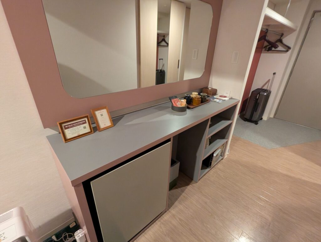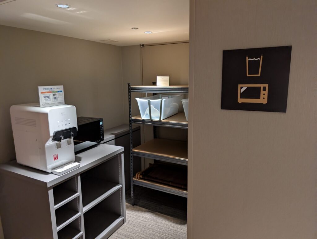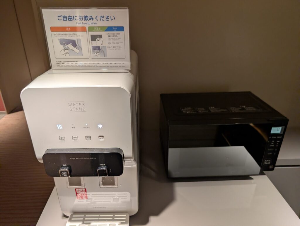 飲料水も確保できるのと、小腹が空いた時や、食事はホテルで簡単に済ませたいといった場合に利用できる電子レンジが各階に用意されているのは嬉しいポイントだと思いました。