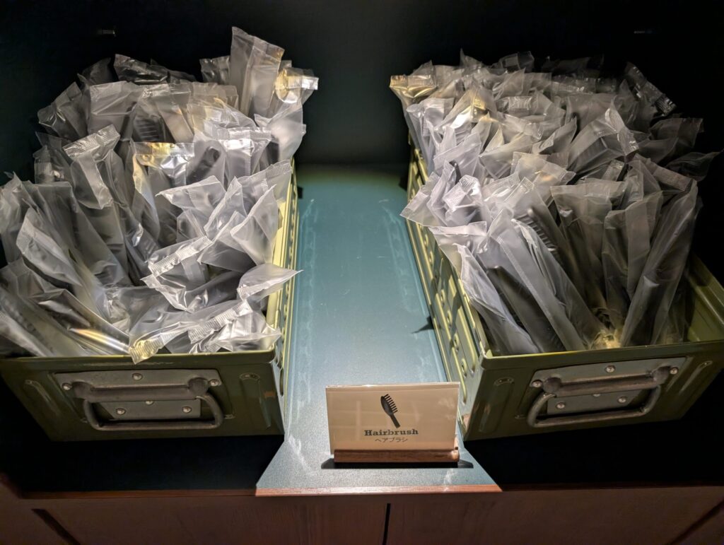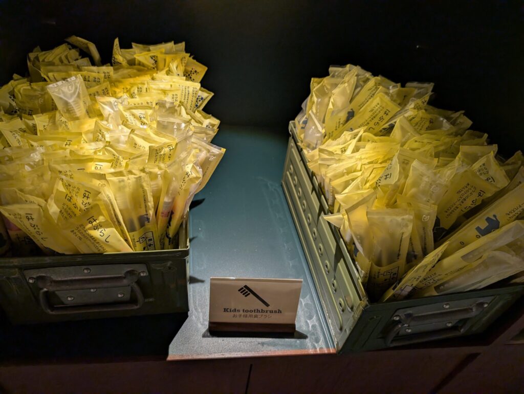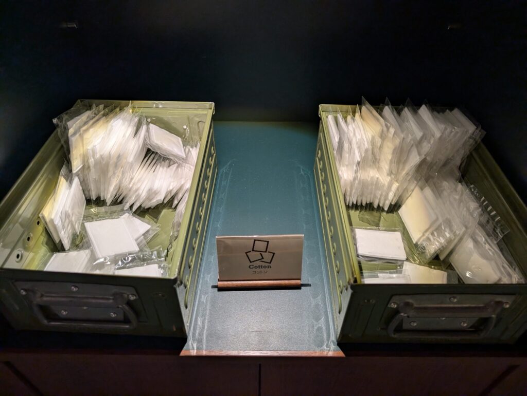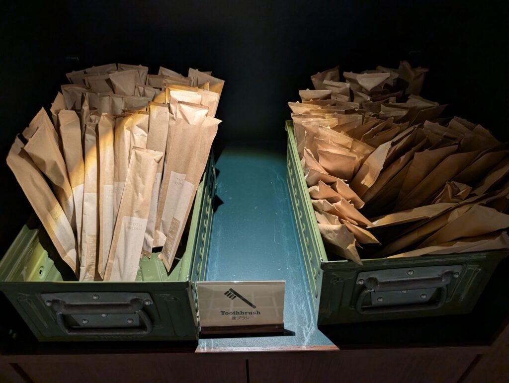 アメニティは各部屋には用意されておらず、アメニティバーで必要な分をピックアップしていく形式となっています。