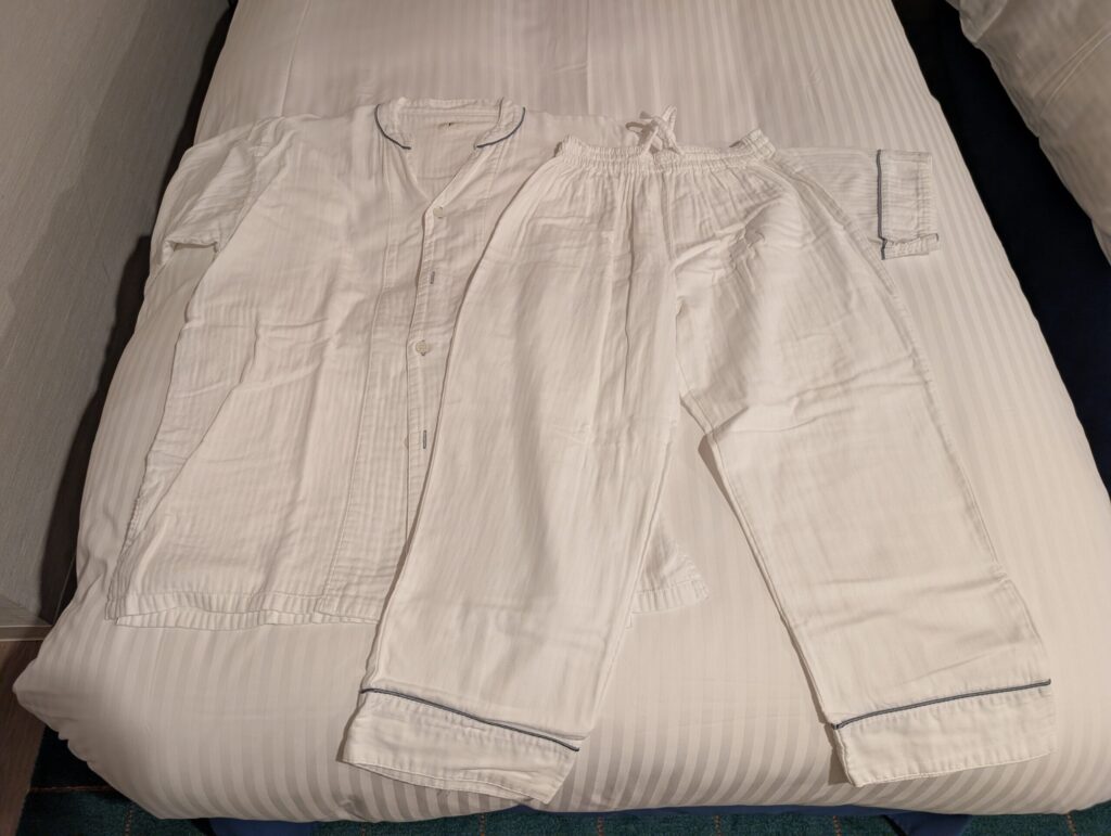 ベッドはこのような感じで、パジャマはベッドの上に用意されていました。