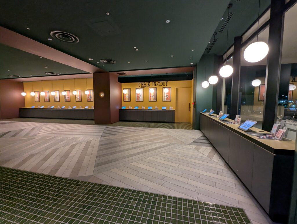 混雑しがちなディズニー周辺ホテルのチェックインですが、たくさんの無人チェックイン用の端末が置かれていて、比較的スムーズにチェックインできそうに感じました。