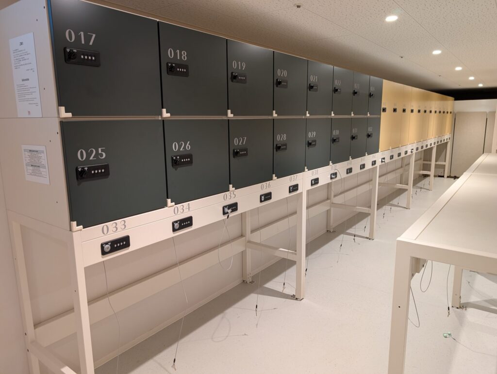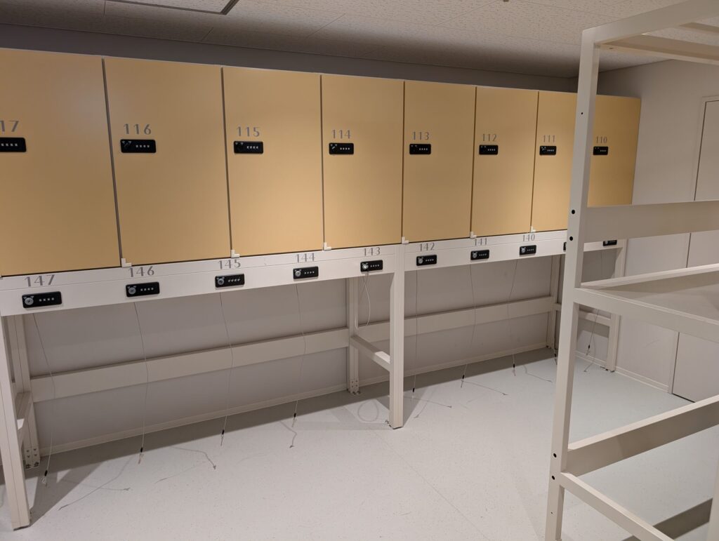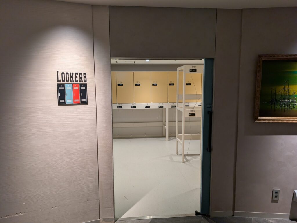 鍵付きロッカーだけでなく、キャリーバッグを繋いでおけるワイヤーロックもありました。