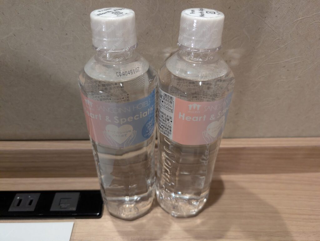 飲料水はチェックイン時にひとり一本ずつ提供されます。