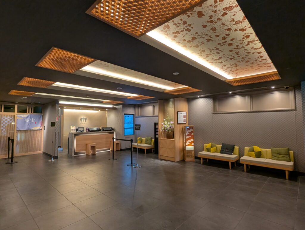 出入口は和を感じさせる市松模様があしらわれた落ち着きのある雰囲気でした。