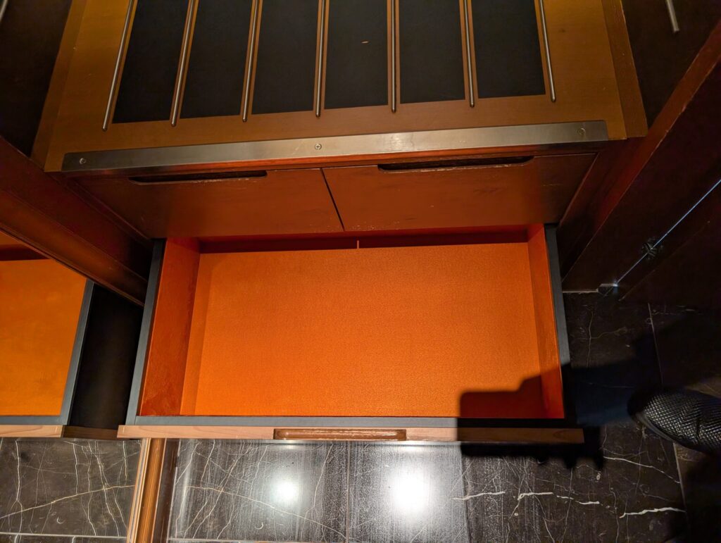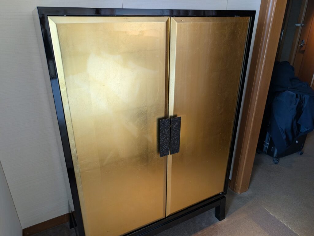 次はこちらの金色で覆われた豪華な扉の棚の中をチェックしてみます。