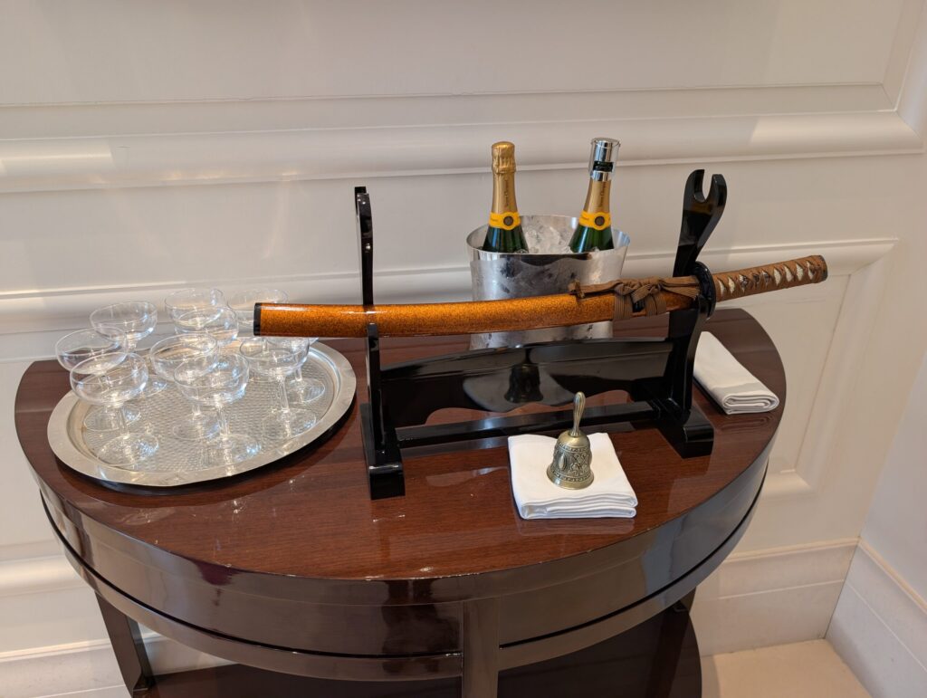 そんな伝統ある儀式を日本の形に落とし込んだセントレジス大阪ではシャンパン・サーベラージュをサーベルのかわりに日本刀で行うとのこと。