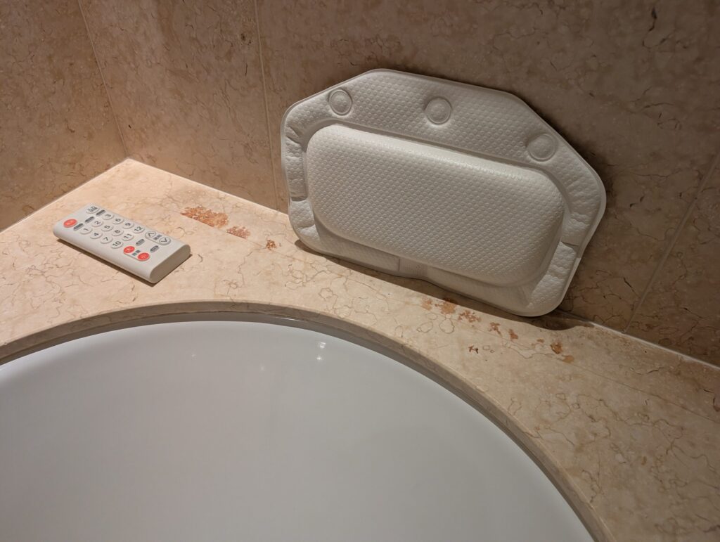 テレビを観る時も、ゆったりと浸かるだけの時にも嬉しいバスピローもありました。