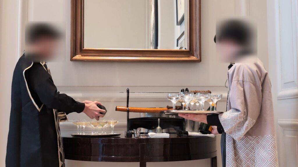 時間になるとスタッフの方が出てきて冒頭で触れたシャンパン・サーベラージュの歴史などについて軽く説明をしてくださいます。
