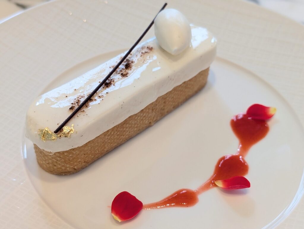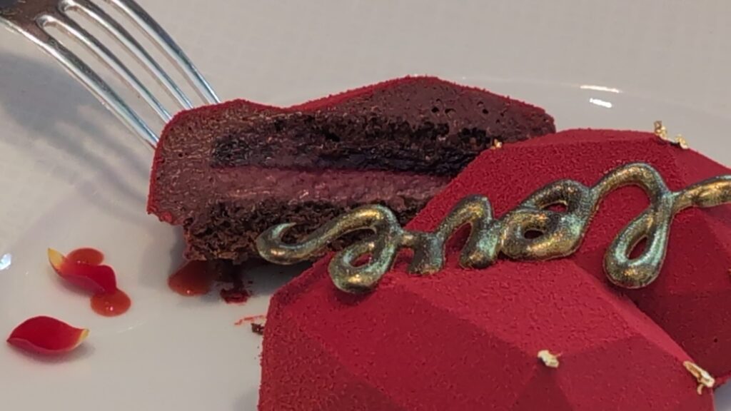 宝石のカットのようなパキッとした外見とは裏腹に、柔らかいムースのような生地で構成されており、甘すぎないチョコレートと優しい甘さと酸味のバランスのとれたベリーが絶妙に調和した一品でした。