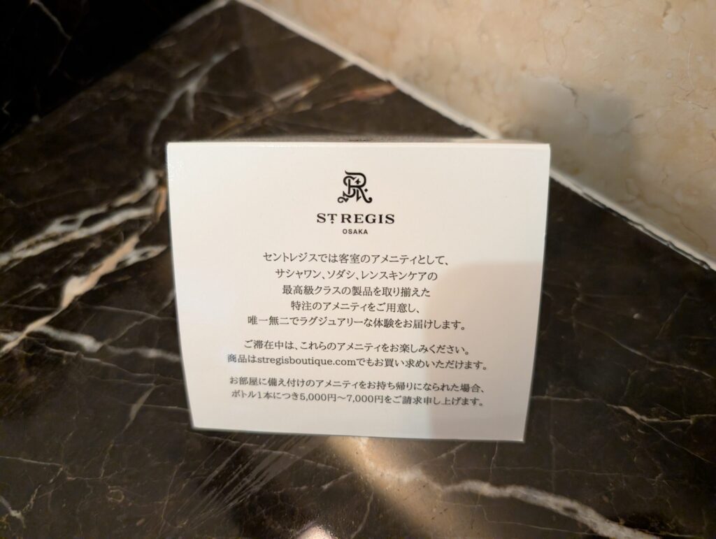 「セントレジス」はマリオットボンヴォイ最高級ブランドのひとつで、日本では大阪にしかありません。