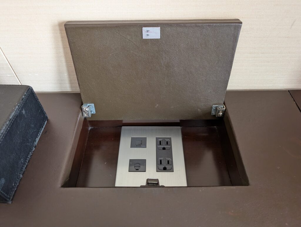 コンセントはどちら側にもあり、引き出しの中に隠れていました。