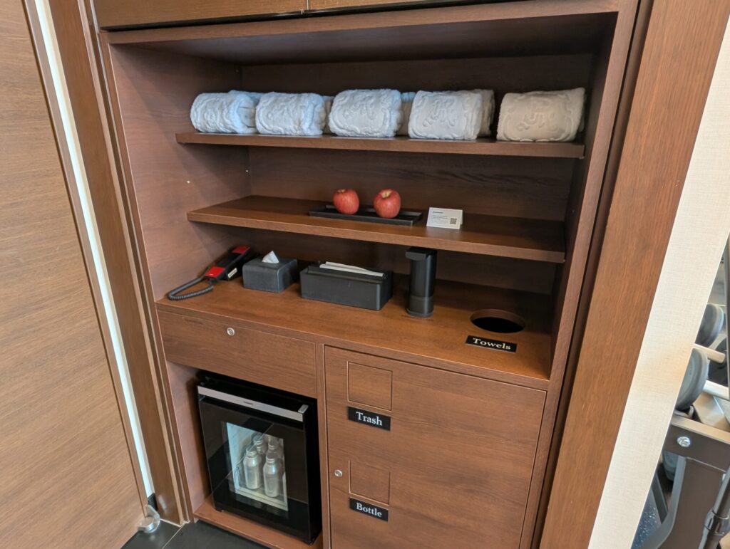 タオルや冷たい飲料水に加えて、運動後の糖質補給に嬉しいりんごも用意されているのも嬉しいですね!