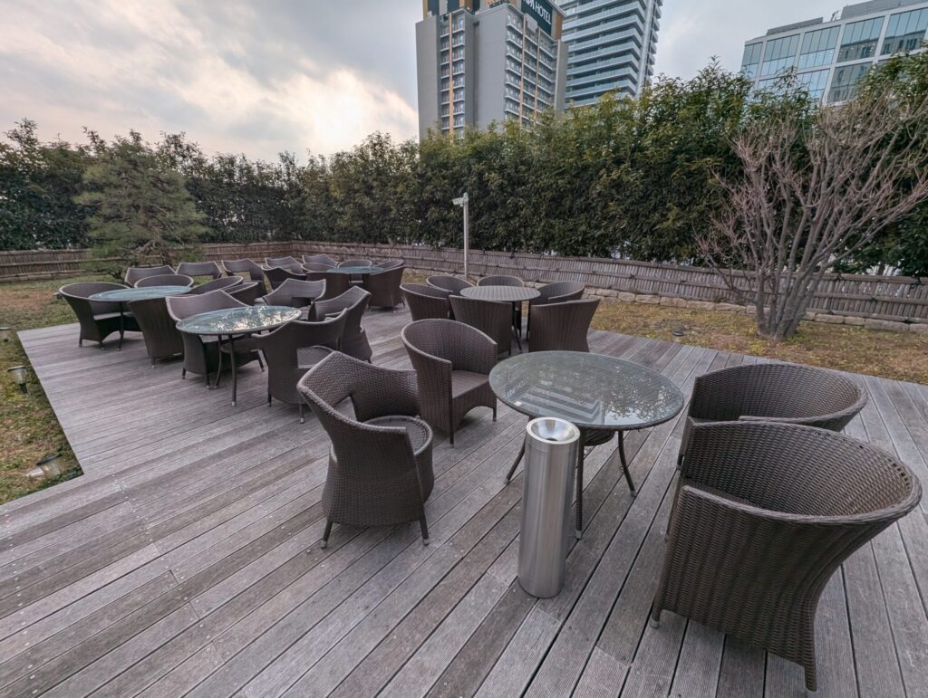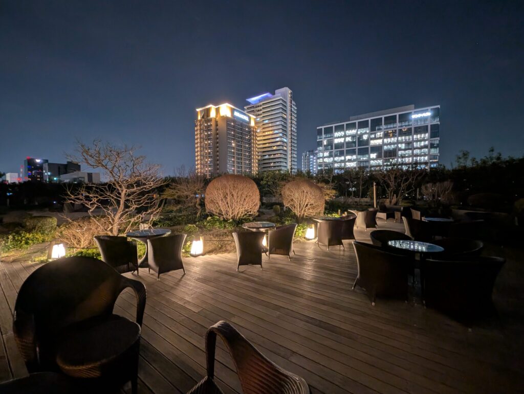 椅子やテーブルも並んでいて、季節によっては庭園を眺めながらゆったりと過ごすこともできそうです。
