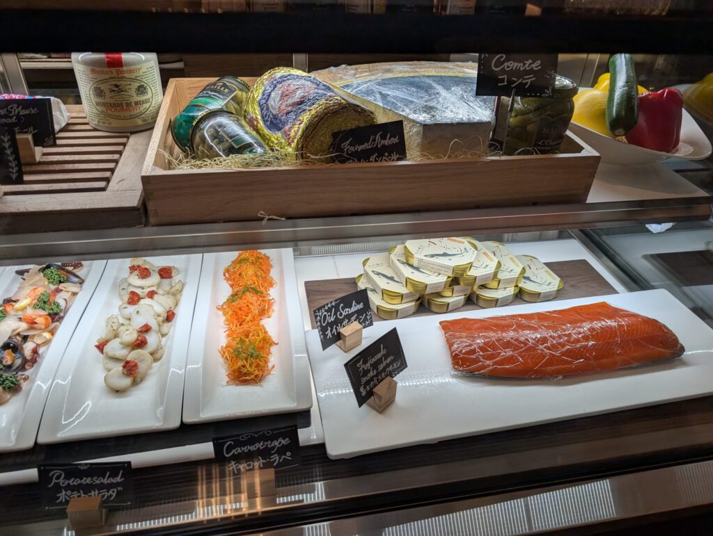 店内のディスプレイには目的のケーキだけでなく、本格的な前菜が並んでいます。