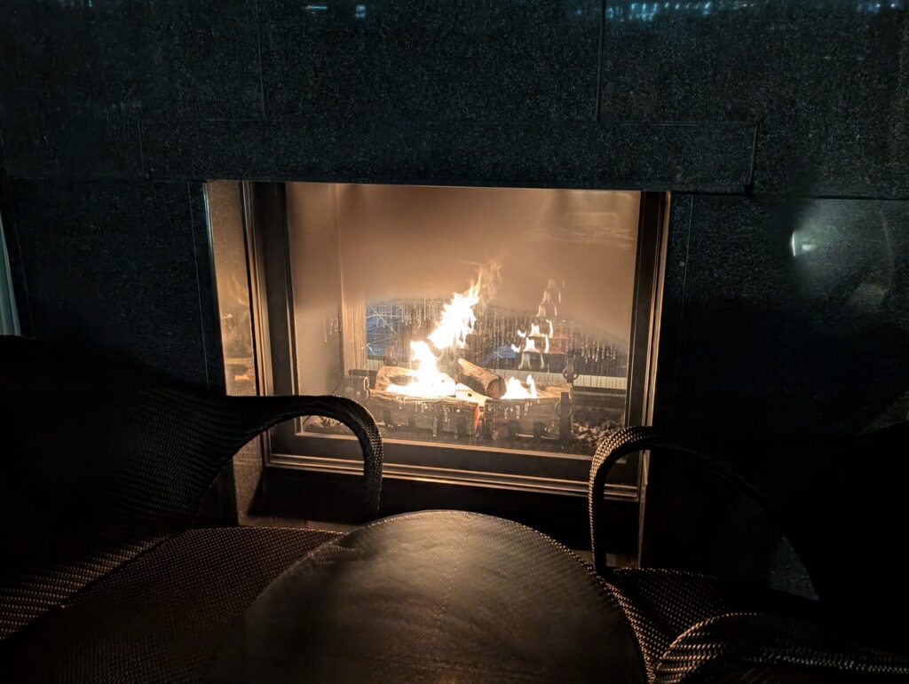 夜になるとぼんやりと優しい照明と暖炉の火が静かに庭園を照らし、また違った美しさを楽しむことができました。
