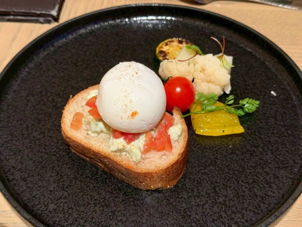 アボカドとポーチドエッグのとろりとした黄身の濃厚な味わいをさわやかな大阪トマトサルサが爽やかにまとめていてます。